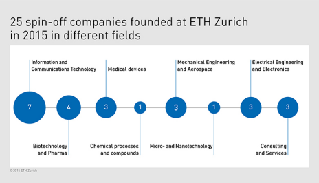 Spin-off companies founded in different fields. (Graphics: ETH Zurich)